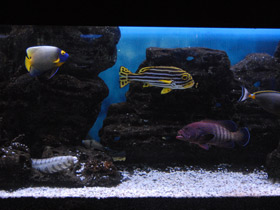 Семейство Муреновые (Muraenidae) - это крупные хищные рыбы, которых не спутаешь ни с какими другими обитателями рифа из-за характерной змеевидной формы тела. Сходство усугубляется безобразной головой с маленькими глазками и огромной пастью. У мурен нет ни грудного, ни брюшного плавников, и передвигаются они с помощью длинных спинного и анального плавников, которые идут по всей длине туловища. У них очень сильные челюсти и многочисленные игловидные зубы, которыми они могут нанести рваные болезненные раны. Иногда зубы настолько велики, что мурена не может полностью закрывать рот. Жаберные щели у этих рыб открываются небольшими округлыми отверстиями по бокам тела, у них нет плавательного пузыря. Около 200 видов мурен обитают в тропических и субтропических водах всех океанов, среди них встречаются настоящие гиганты весом до 50 кг и диной свыше 3 метров.