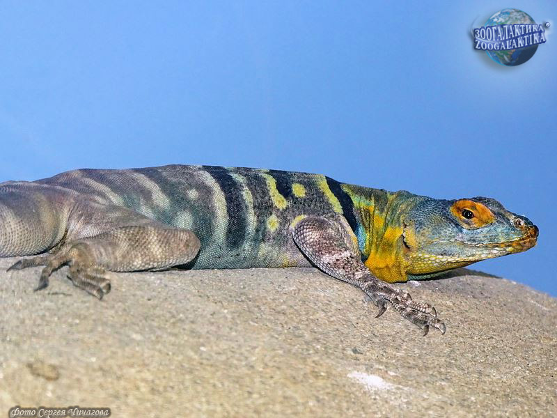 Каменные игуаны – довольно крупные ящерицы, длина тела которых достигает 45 см. Они высококлассные скалолазы. Ноги у них расставлены так широко, а туловище способно уплощаться настолько, что игуана без труда взбирается даже по отвесным скалам и проскальзывает в самые узкие расщелины. Как и ее сородичи, преследуемая хищником, она легко отбрасывает хвост, обеспечивая себе несколько лишних секунд для бегства.